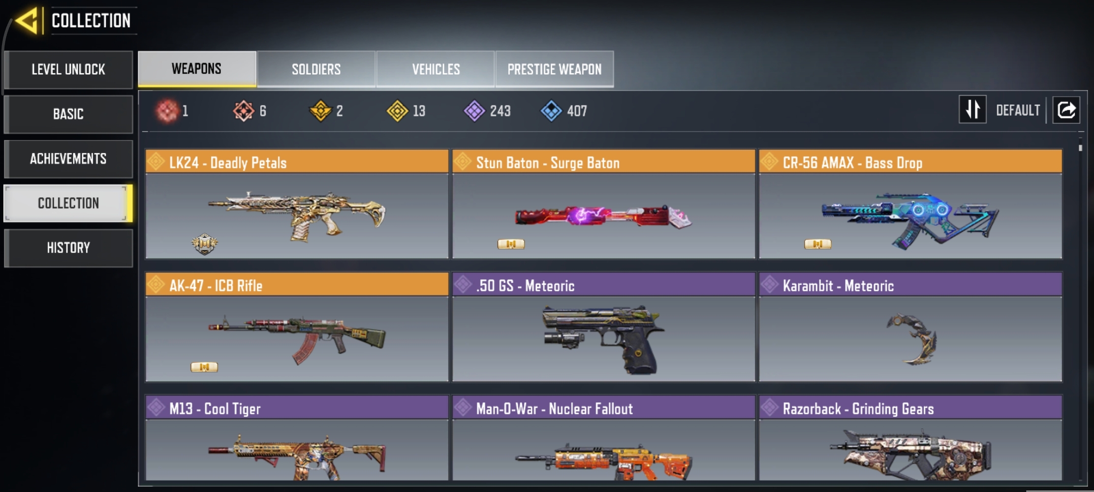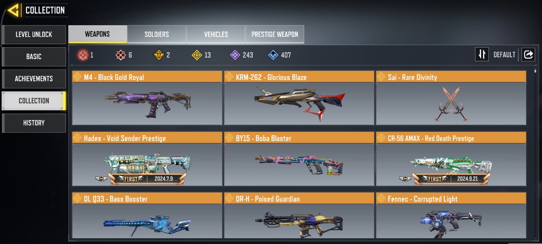 6 MYTHICS w 1 MAXED | 13 LEGENDARIES | 0 MYTHIC CHARACTER 0 MAXED | including 1 Legendary character and 1 LEGENDARY VEHICLES